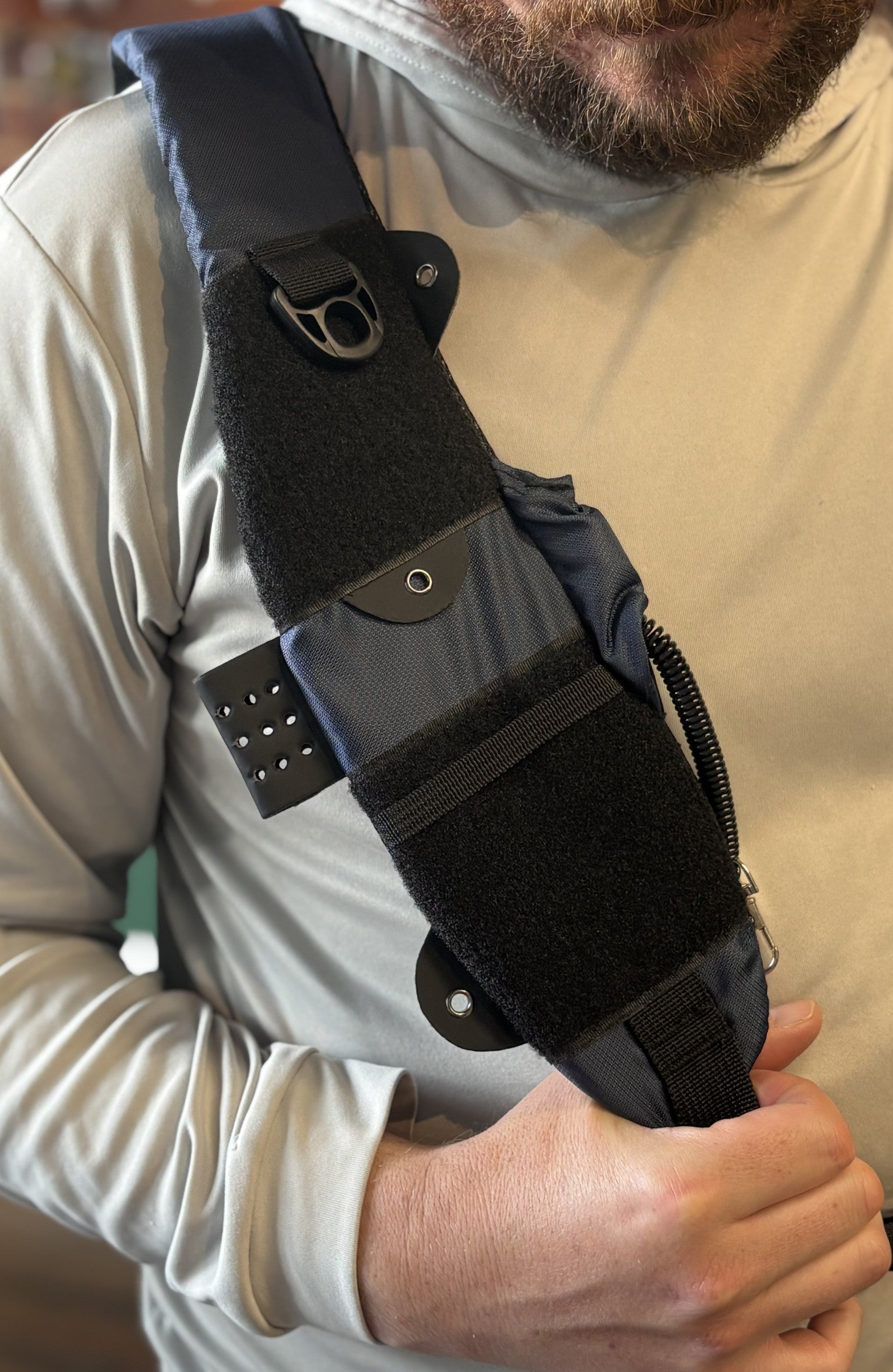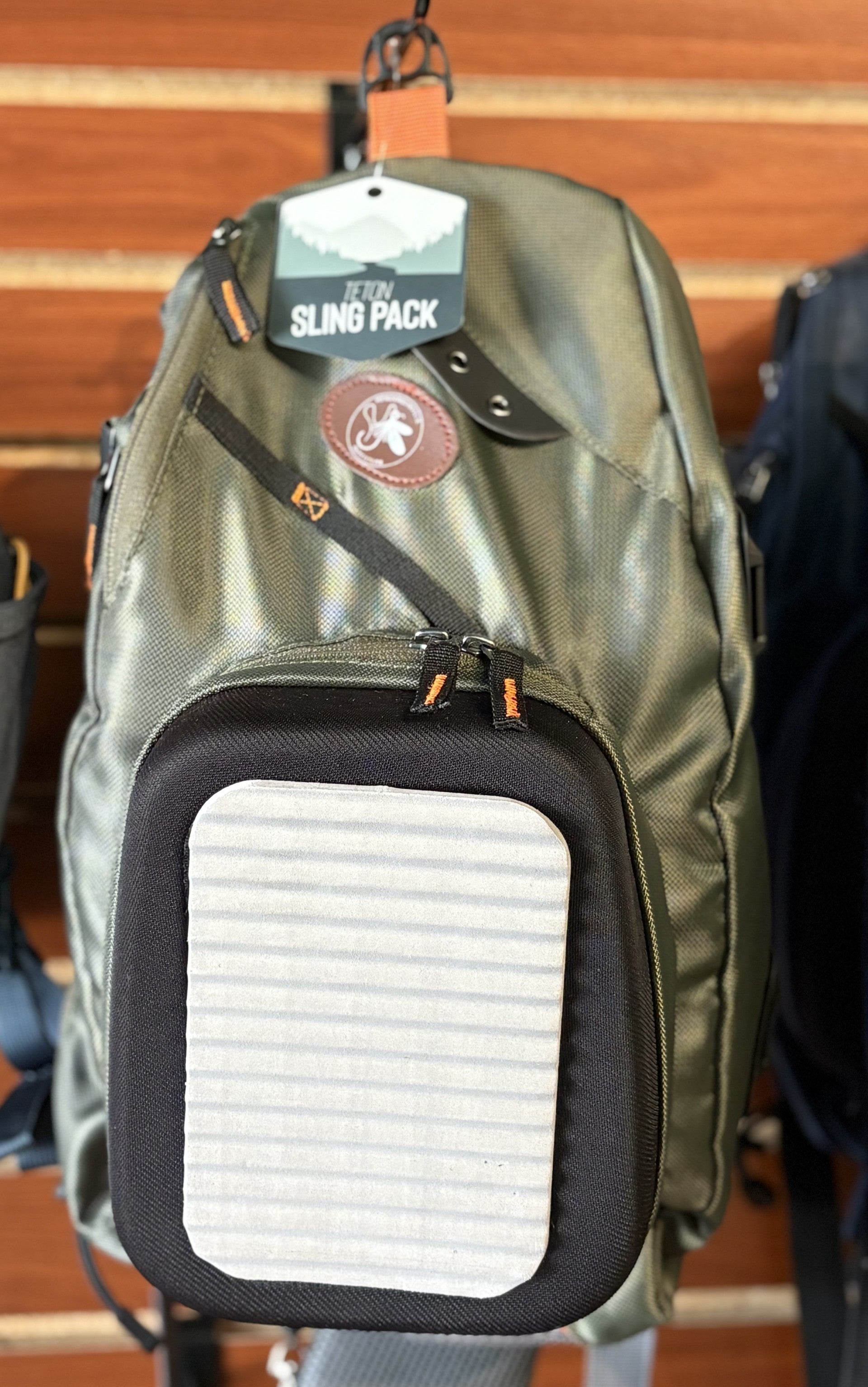 Our lightweight sling pack features strategically placed pockets and attachment points to carry a day’s worth of gear out of your way yet quickly accessible. Made with waterproof fabric and YKK zippers and includes a removable fly patch.