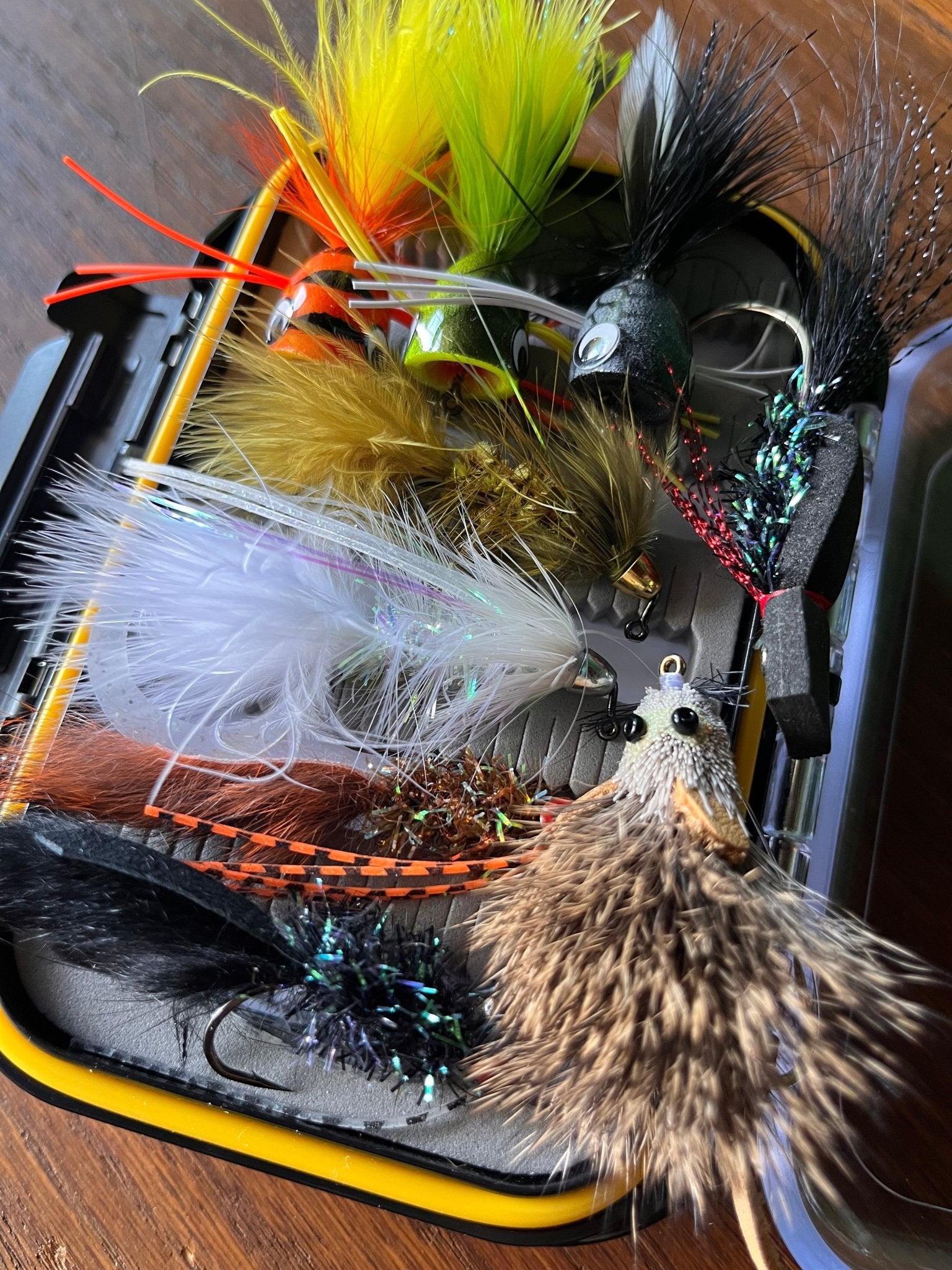 This comes with 6-12 (depending on bundle excluding Muskie) hand picked flies specific to the fish you are pursuing in a waterproof box.